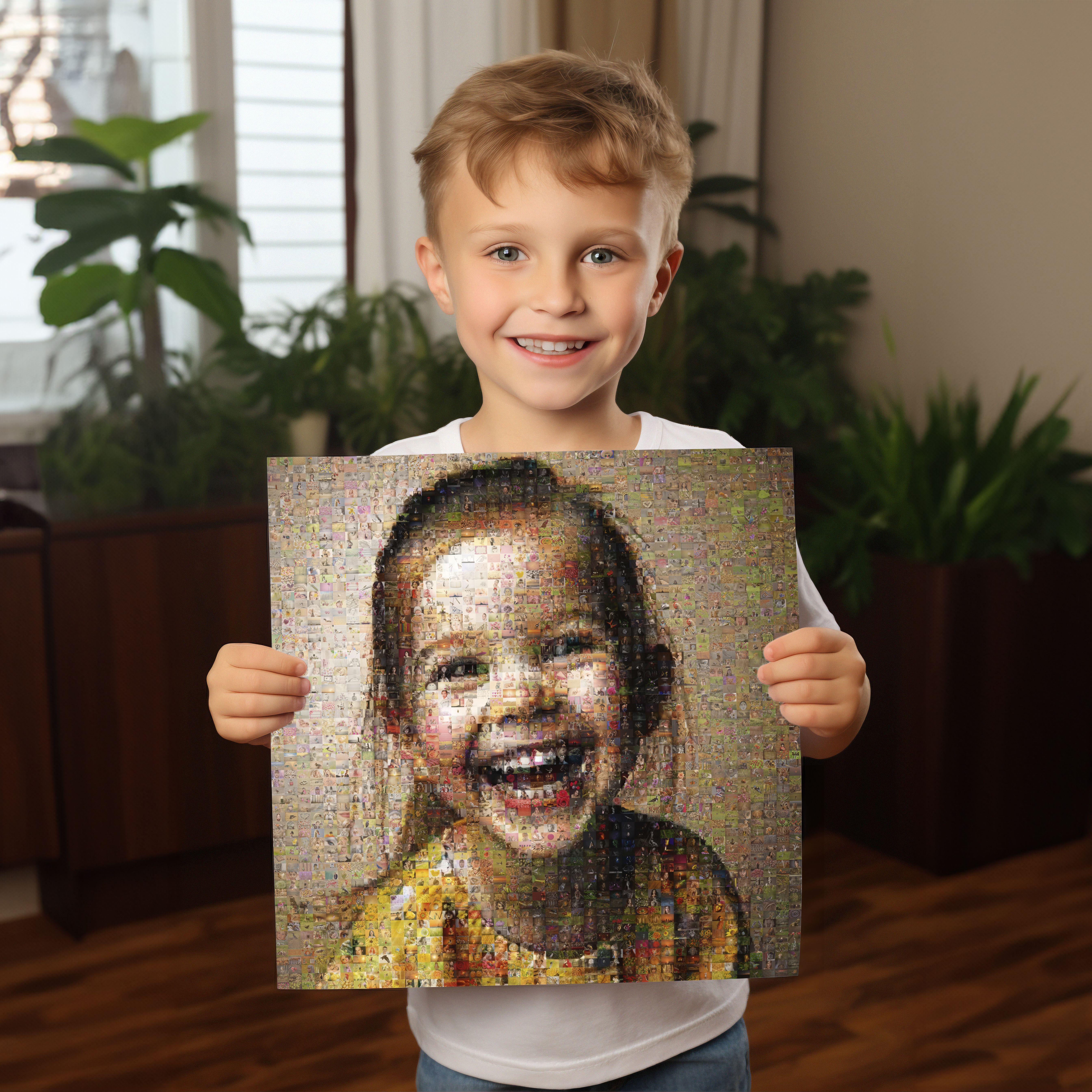 Verwandle deine wertvollen Kinderfotos in ein beeindruckendes Fotomosaik, das die schönsten Momente deines Kindes in einem einzigartigen Wandbild festhält. Mit diesem individuellen Kunstwerk erstaunst du Freunde und Familie, egal ob an Geburtstagen, zur Taufe oder als liebevolles Andenken für die Großeltern.